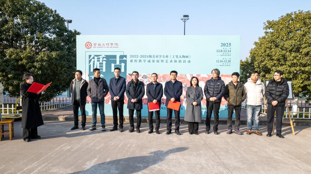 12月18日上午,美术与设计学院 “循古觅今”——2022-2024级《工笔人物画》课程教学成果展暨艺术体验活动在校园内举行。党委宣传部常务副部长白志勇出席开幕式并宣布展览开幕,教务处处长周喜华致辞,开幕式由学院副院长马箖珺主持。
