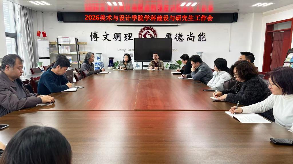 会议首先总结2025年学院学科建设以及研究生教育工作,提出2026年度学院学科建设目标。针对研究生教育工作从招生宣传、培养质量、就业工作、导师队伍建设、教育教学方面做出规划。在学位点建设方面重点强调提前做好美术与书法硕士点评估准备工作,积极筹备申报设计专业硕士点。