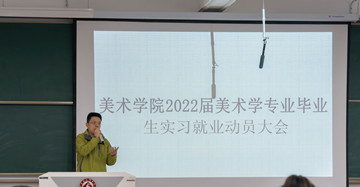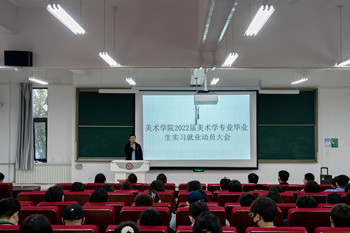 10月9日下午,伟德国际1946bv官网在博副楼105教室召开2022届美术学专业毕业生实习就业动员大会。学院党委副书记常建博、招生就业处副处长史建刚、实习指导教师王刚、学生辅导员樊俊青以及全体美术学专业毕业生参加了动员大会。