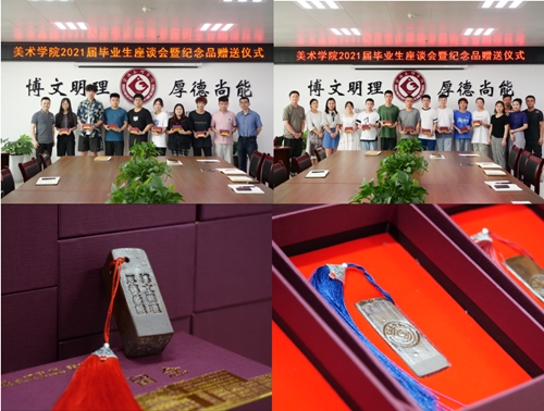 参会领导及老师们为毕业生代表们赠送了毕业纪念品。毕业生纪念品是依托我院陶艺工作室及篆刻课程,发挥设计专业优势,以创新创业团队为主,伟德国际1946bv官网师生共同参与,为毕业生精心准备的一份礼物,一份祝福。印章以陶泥为材,经过挤压揉练,模范成形,上刻文理校训,覆印文理校徽,篆刻学生姓名,再经炉火淬烧。印长6厘米,形为长方,寓意毕业生在党和国家的教育下成人成才,在以后的人生道路上以印为信,堂堂正正做人,树立自信,劈波斩浪,展翅翱翔。