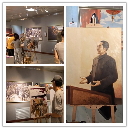 在展览的同时,学院还将美术经典作品融入油画、国画、色彩、素描等专业课程教学之中,加强课程思政建设。教师在课堂教学中围绕美术经典画作,讲授画作背后的党史故事,解析画作的绘画技法及构图,结合历史背景解读作者的创作构思、人物塑造、历史表现、现实描绘,通过课堂讲解,现场临摹实践,让学生从一幅幅党史瞬间深刻体悟革命情怀、精神图谱;切身感受大党之伟、气象之美;在课程教学润物无声厚植青年大学生爱党爱国情怀。