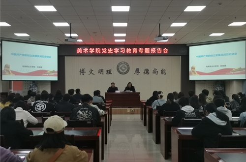 4月14日下午,我院在高新校区甘棠厅举办了党史学习教育专题报告会,马克思主义学院院长孙宏健应邀作了《中国共产党的创立发展及其历史使命》专题报告。学院全体师生党员、入党积极分子及学生干部代表聆听了报告。报告会由院长王宝强主持。