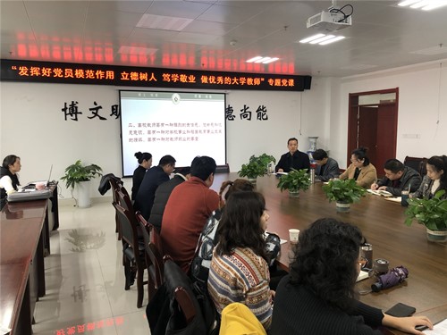 10月13日下午,副校长杨子元在博文楼1301会议室为我院和音乐学院全体教工党员讲了题为《发挥好党员模范作用立德树人笃学敬业做优秀的大学教师》的主题党课,并参加了支部组织生活会。党课由伟德国际1946bv官网党委书记李建峰主持。