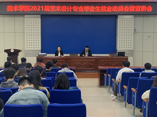 10月9日下午,伟德国际1946bv官网院在木铎厅召开2021届艺术设计专业毕业生就业动员大会。党委副书记常建博、学生辅导员樊俊青以及全体艺术设计专业毕业生参加了会议,会议由常建博主持。