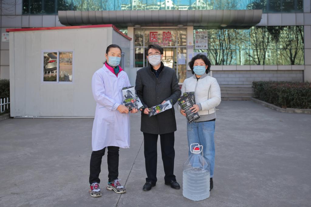 近日,在疫情防控工作最吃劲的关键阶段,远在韩国就读博士的我院教师马箖珺同志情系学校、同心抗疫,在韩国购置100个KF94防病毒专业医用口罩邮寄回国赠与学校。2月16日下午,马箖珺父亲马宗科驾车将30斤75%医用酒精和100个KF94防病毒专业医用口罩等捐赠物资送至学校,用于学校疫情防控工作。副校长王富平代表学校感谢马箖珺同志用实际行动为学校疫情防控工作贡献力量,携手同心守护师生健康安全。校医院负责人接受了物资捐赠。