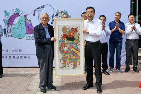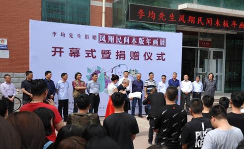 5月23日下午,李均先生捐赠凤翔木版年画展开幕式及捐赠仪式在我校高新校区艺术楼前广场举行,85岁高龄的李均先生将他收藏了30多年的凤翔木版年画170幅全部捐赠给我校“陕西非物质文化遗产传承教育研究中心”,用于支持中心开展的教学与研究工作。校长郭霄鹏、校党委副书记栾宏、副校长杨子元,李均先生以及宝鸡市老科协、市民俗博物馆、美协领导,学校相关职能部门领导与伟德国际1946bv官网师生二百余人参加了开幕式及捐赠仪式。