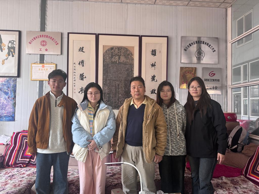 为深化创新创业教育改革,推动非遗文化活态传承,寒假期间我院“艺数共生”大学生创新创业团队赴陕西铜川,开展耀州窑文化传承与创新发展专题调研。团队由我院设计系黄翠老师带队,以艺术创新、数字赋能、学科交叉、产教融合为方向,在实地调研中提升青年学子创新实践能力。